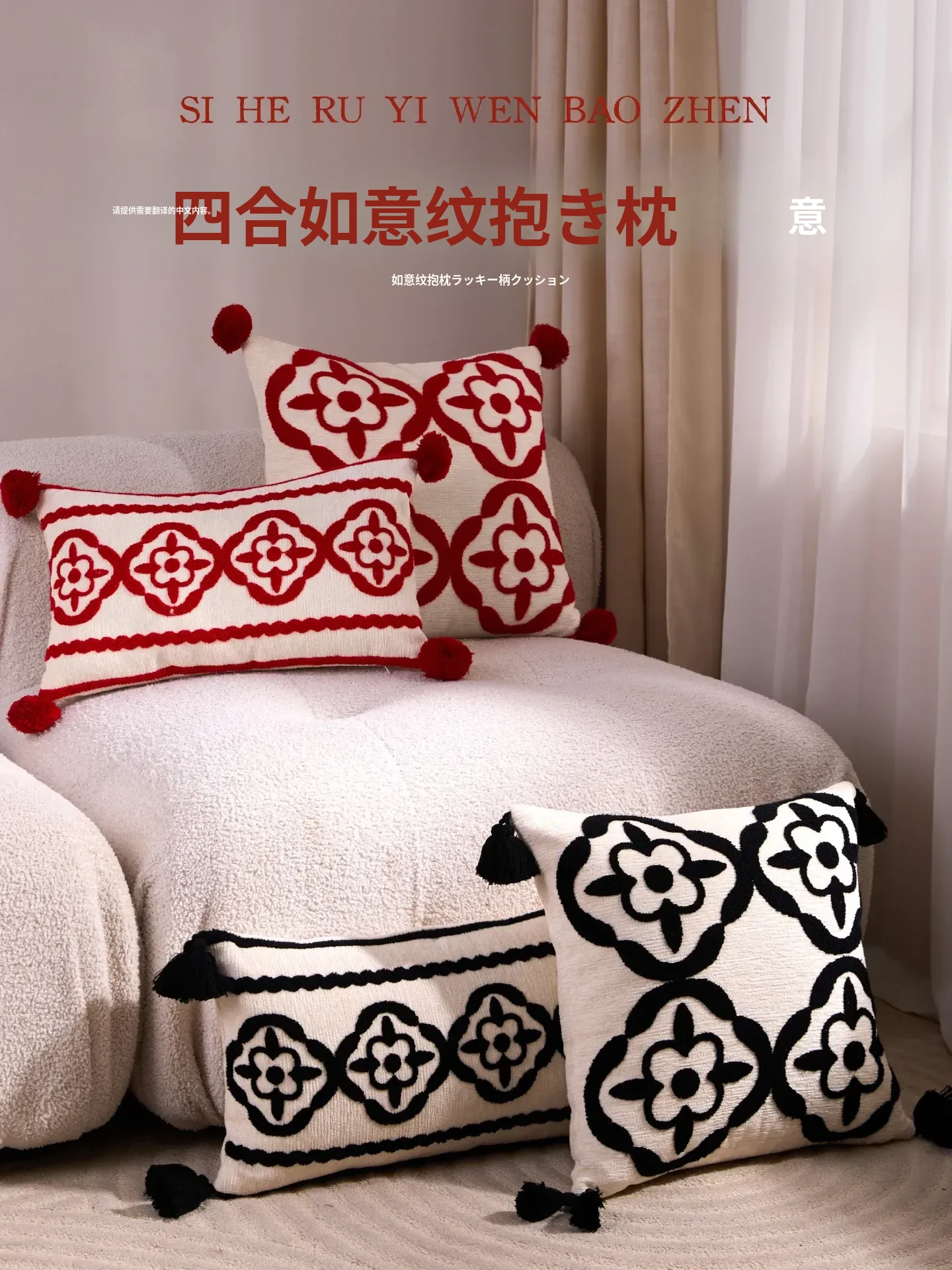 新中式風格の流れるタッセルクッションカバー、祝いの新年にぴったり!家庭用、寝室やリビングのソファに最適な背もたれクッション。おしゃれで快適な空間を演出します!