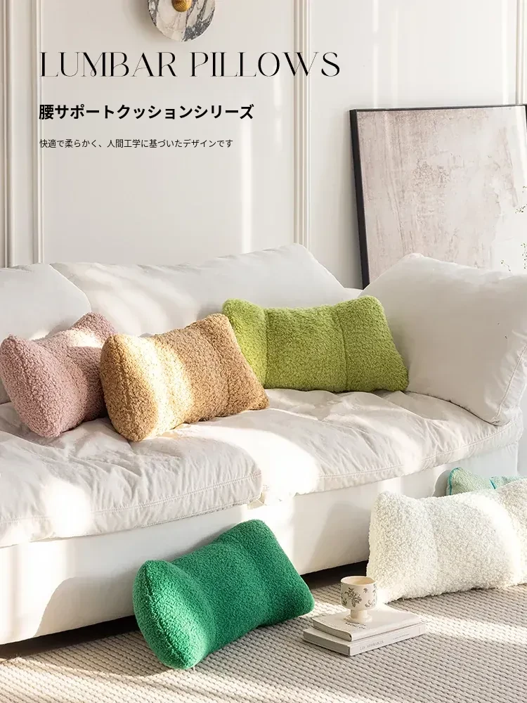 シンプルな無地ロングウエストピロー|クリーミーな風合いで冬のリビングにぴったり!柔らかいフランネル素材で、ソファやオフィスチェアにも最適な腰サポートクッション。心地よい座り心地を実現します!