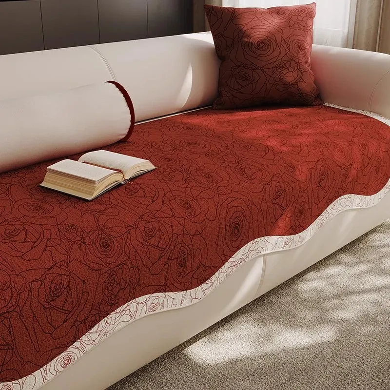 2026年の馬年にぴったり!新作赤色結婚式ソファカバー、滑り止め機能付きのユニークなデザイン。秋冬に最適な華やかさで、新年を祝う特別なインテリアアイテム!