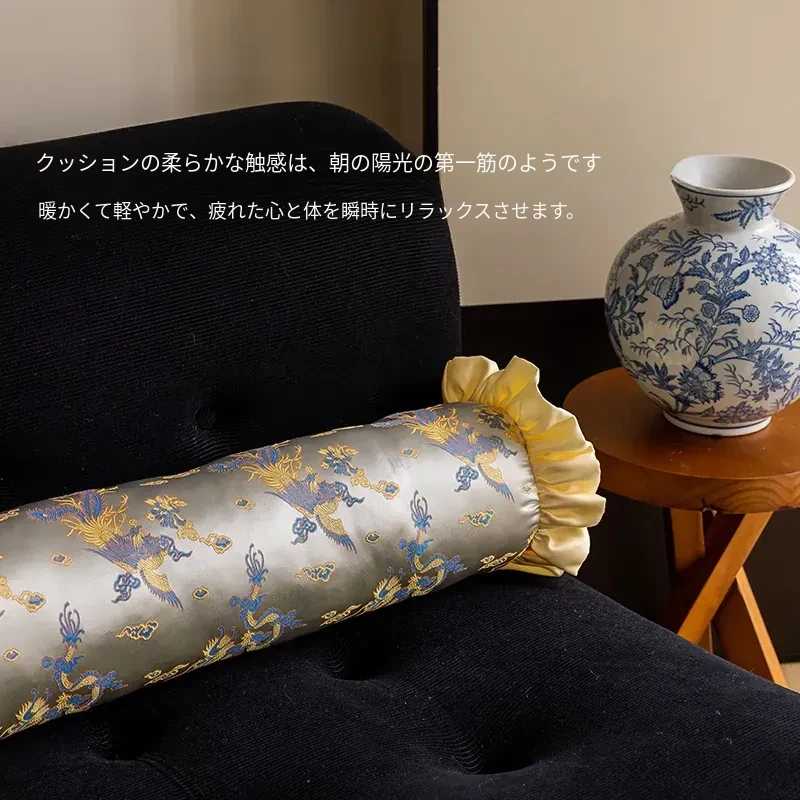 新中式ロングクッション|高級感あふれる中国風デザイン|ベッドサイドやソファにぴったり|リラックスできる快適なサポート|客間にも最適なスタイリッシュなアクセント