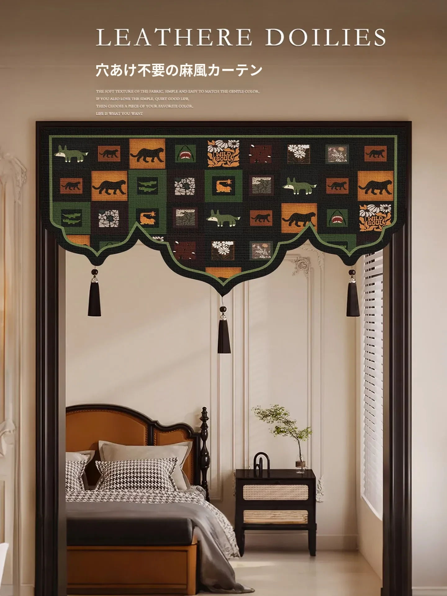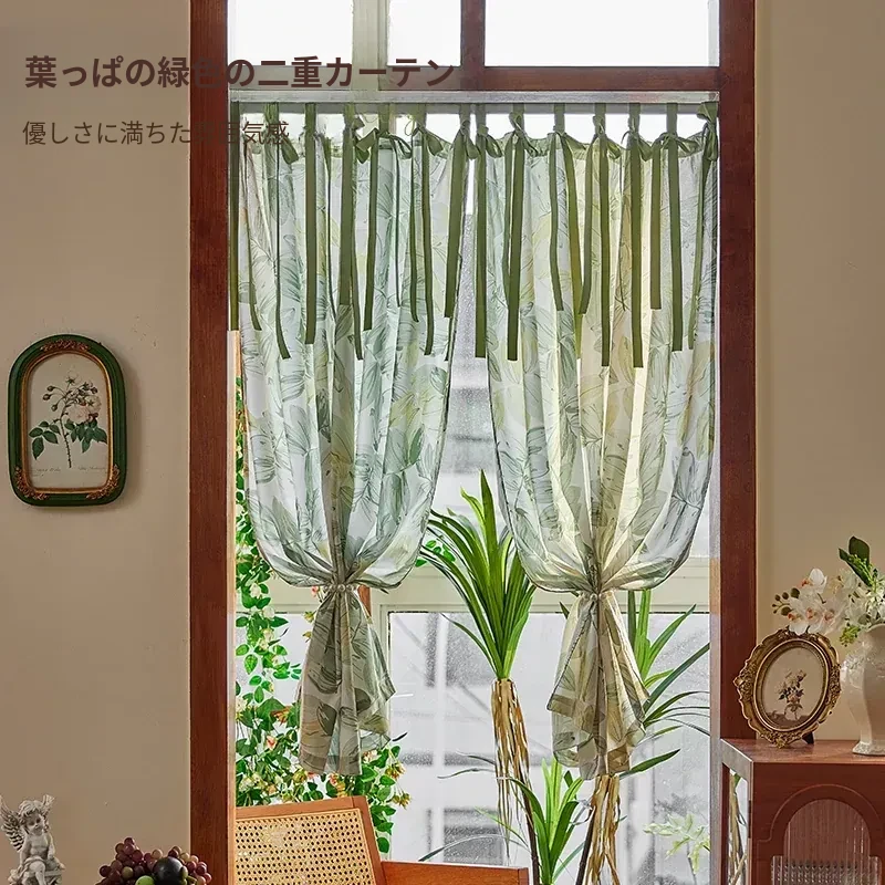 アンティーク風のドアカーテン 半透明な短いカーテン キッチン用の半分遮光カーテン アメリカンスタイルの雰囲気を演出 おしゃれで簡単取り付け、穴あけ不要!