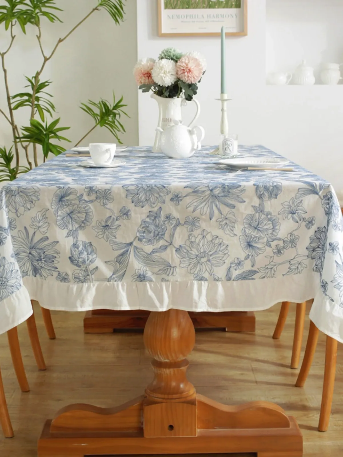 アメリカンスタイルの高級テーブルクロス - 上質なファブリックで作られた田舎風デザインのレトロなピクニックテーブルクロス。長方形、華やかなフラワープリントとレースの縁取りで、特別なひとときを演出します。
