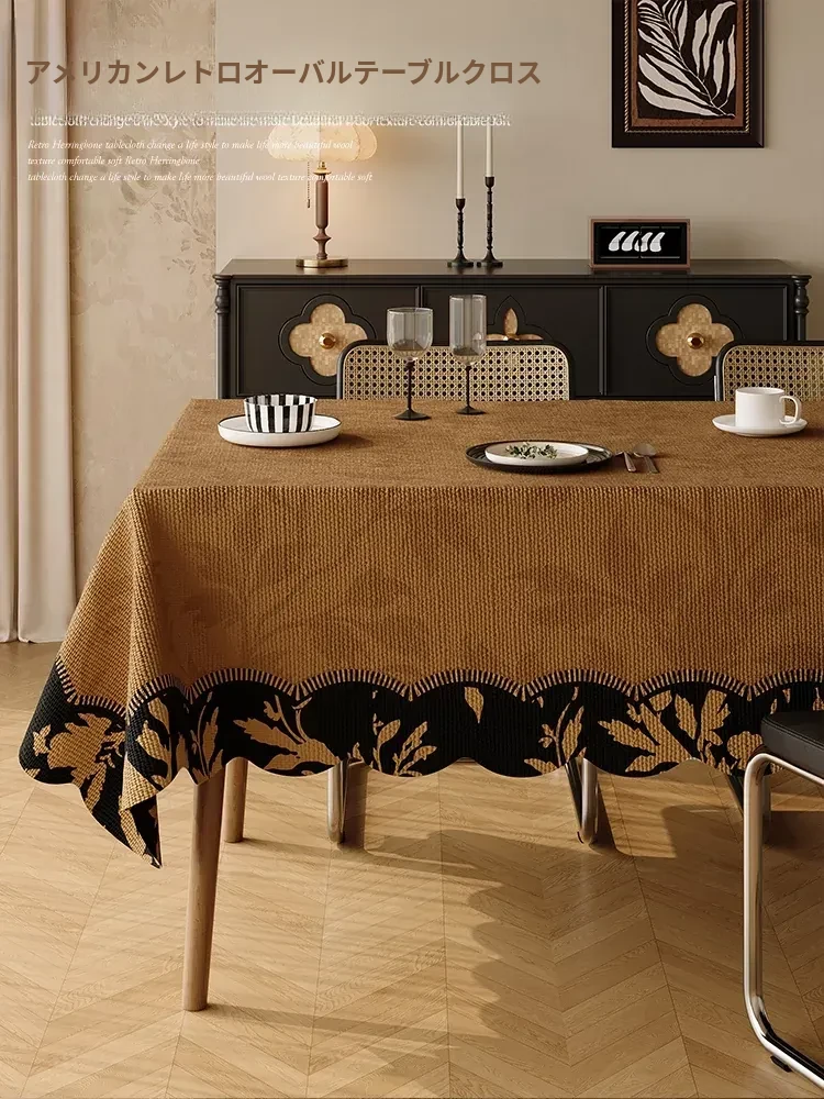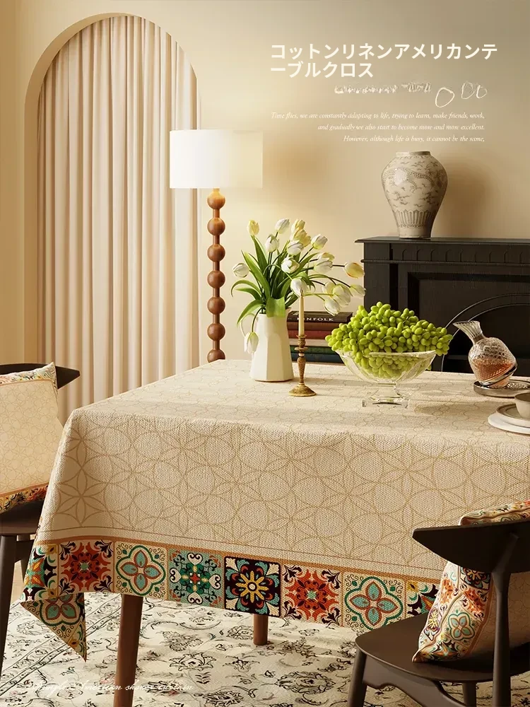 アメリカンヴィンテージスタイルの高級感あふれる麻布テーブルクロス - 防水機能付き、家庭用に最適なラグジュアリーなメラードコーヒーテーブル用クロス。