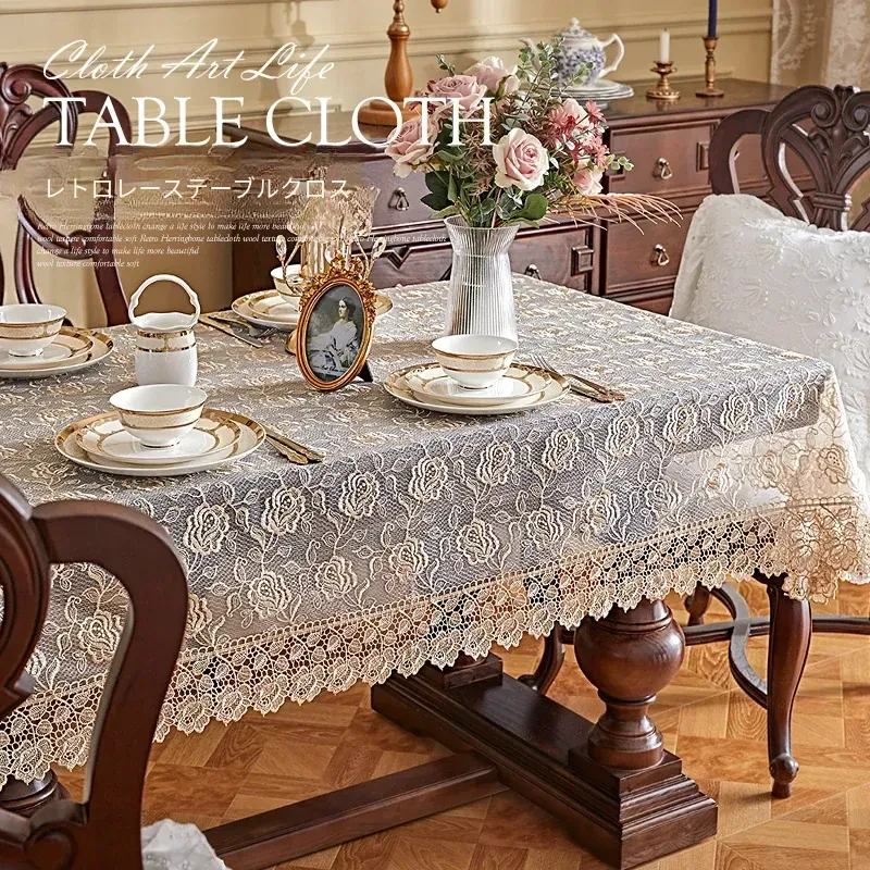 欧風ヴィンテージインスピレーションレーステーブルクロス、透かしデザインの高級感あふれる長方形カバーテーブルシート、自宅を彩る魅力的なアイテム!