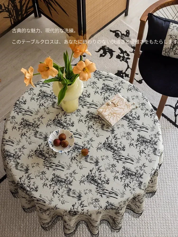新中式国風テーブルクロス - 高級感あふれる流れるフリンジデザイン!2026年新作、滑り止め付きの円形テーブルクロスで、おしゃれなダイニングやカフェ空間を演出します。