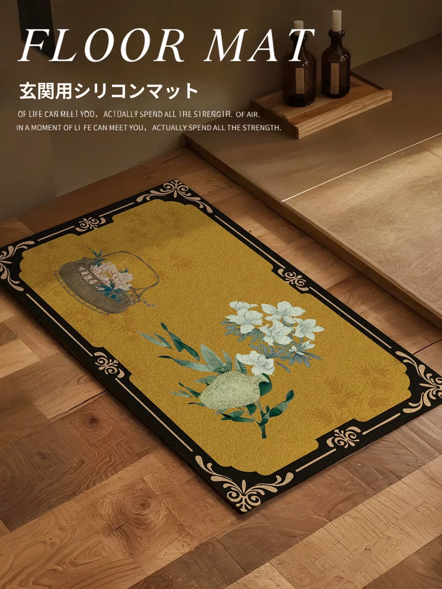 中古風の中華スタイル玄関マット - クラシックデザインでおしゃれな客間にぴったり!滑り止め機能付き、雰囲気を引き立てるシルクリングマット。家に迎える瞬間を特別に演出します!