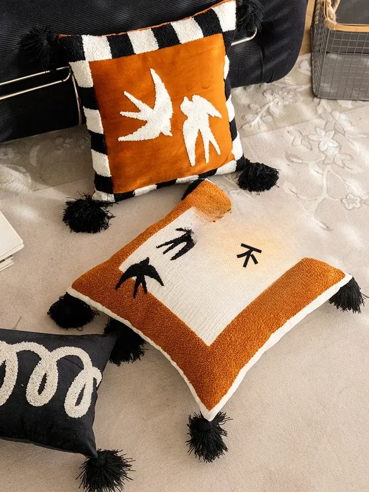 アンティーク風の高級感漂う刺繍クッションカバー - リビングやソファにぴったり!アメリカンヴィンテージスタイルのベッドサイドクッション、洗濯可能でお手入れ簡単。おしゃれな空間を演出します!