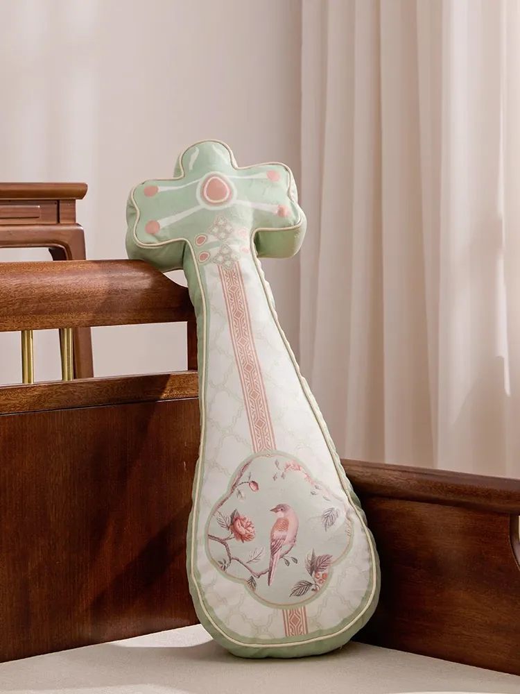 新中式デザインのユニークな琵琶型クッション - リビングルームやソファにぴったりのラグジュアリーな背もたれ。レトロな中国風で、寝室にも最適な腰枕です。おしゃれで快適な空間を演出します!