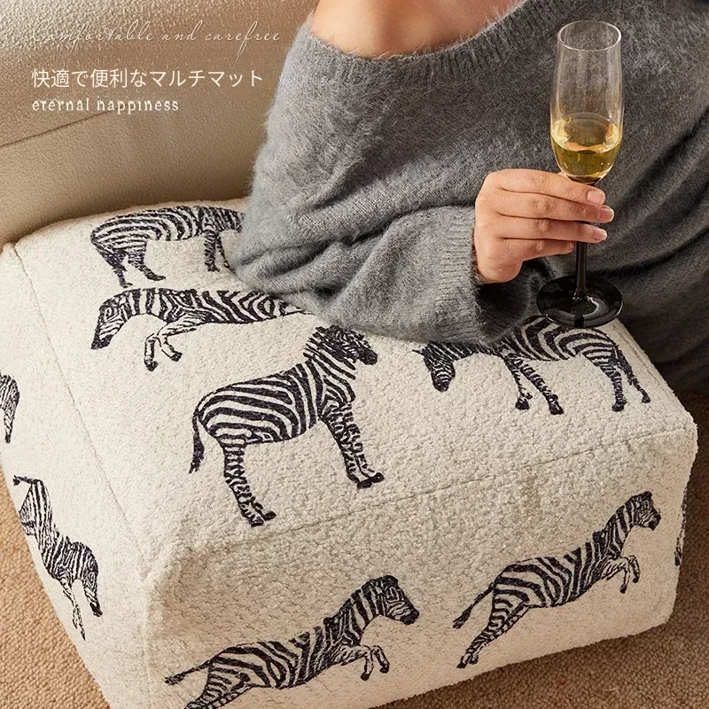 新中式スタイルの動物柄ゼブラクッション!リビングルームにぴったりのソファ用スツール、リラックスできるカジュアルな低いスツール。ホワイトの窓辺に最適な座布団で、心地よいひとときをお楽しみください!