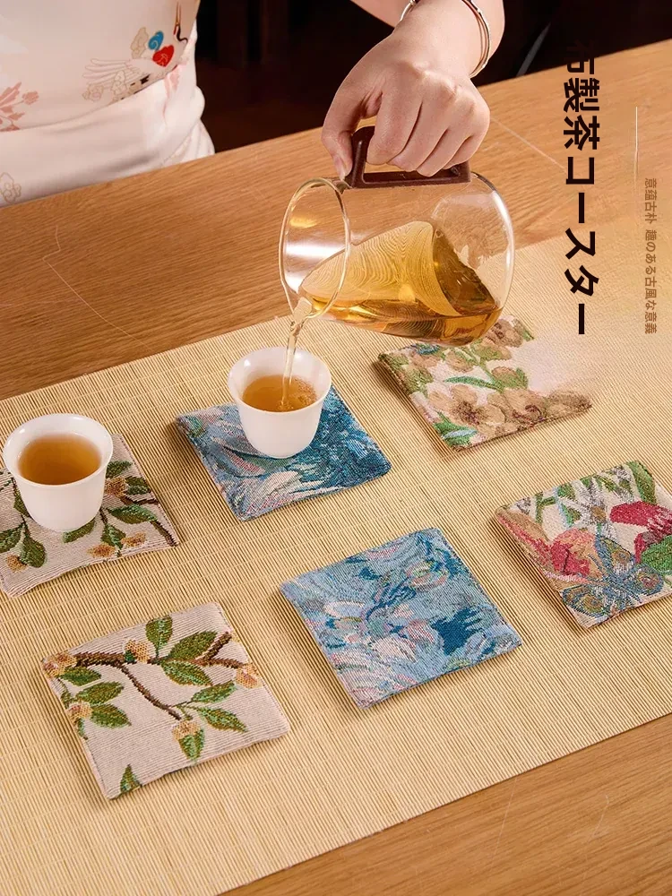 アメリカンスタイルのラグジュアリー感漂う布製コースター - ヴィンテージテイストのティーマット、家庭用の雰囲気を演出する熱絶縁マット。スクエア型で、皿やボウルをしっかりサポート!