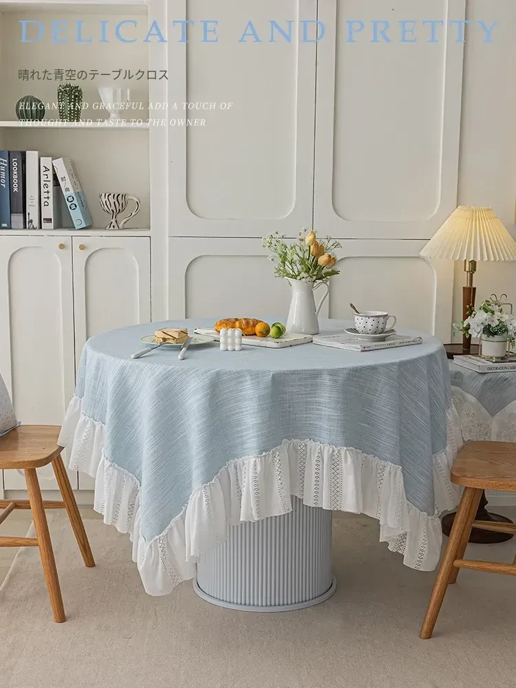 アメリカンカントリー風レース小丸テーブルクロス - おしゃれなインテリアにぴったりな高級感あふれるティーテーブル布!インスタ映え間違いなしの上品なデザインで、あなたの食卓を華やかに演出します。